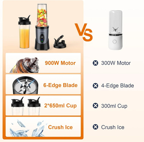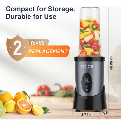 Prepara tus batidos y jugos favoritos al instante con la Licuadora Personal Koios BL337B. Su potente motor de 900W y cuchillas de acero inoxidable garantizan mezclas perfectas en segundos, impulsando tu bienestar diario. smoothie