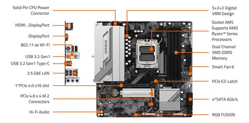 🚀 Arquitectura AM5 Avanzada: Soporte total para procesadores AMD Ryzen serie 7000, 8000 y 9000, asegurando longevidad tecnológica.