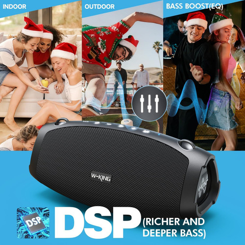 El W-KING de 120W redefine lo que significa un altavoz portátil. Diseñado para quienes exigen un volumen extremo sin sacrificar la fidelidad, este dispositivo entrega una presión sonora capaz de llenar espacios abiertos y grandes salones con bajos profundos y agudos definidos que se escuchan a kilómetros.